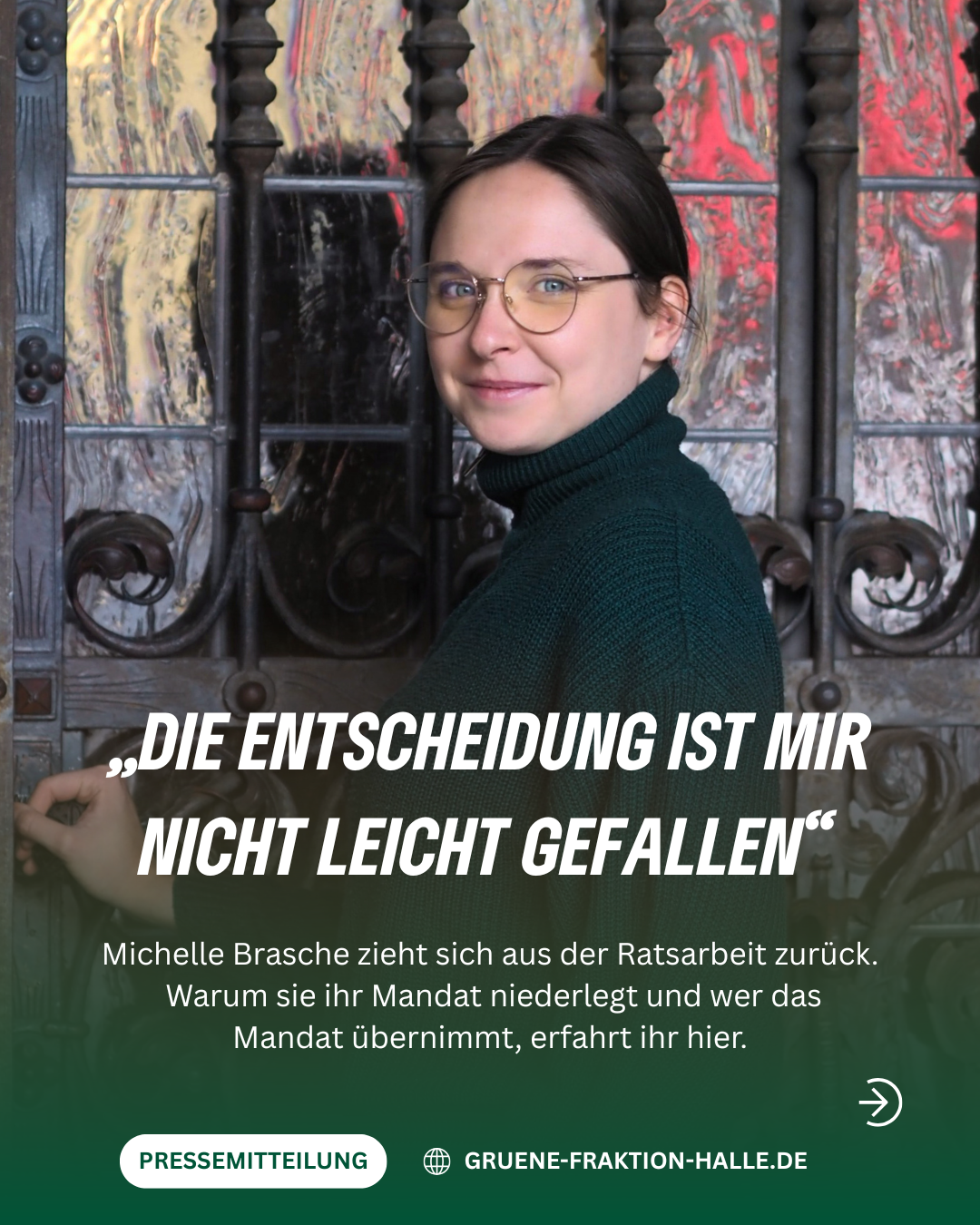 [Halle, den 29.07.2025] Die hallesche Stadträtin Michelle Brasche (BÜNDNIS 90/DIE GRÜNEN) wird ihr Mandat im Stadtrat von Halle (Saale) im Laufe des Augusts niederlegen. Ihr folgt Christian Feigl nach, ein langjähriges Mitglied der Fraktion mit besonderer Expertise in Stadtentwicklung und Stadtplanung. Brasche war seit 2024 jüngstes Mitglied der Fraktion und engagierte sich im Stadtrat insbesondere in der Jugend- und Sportpolitik.